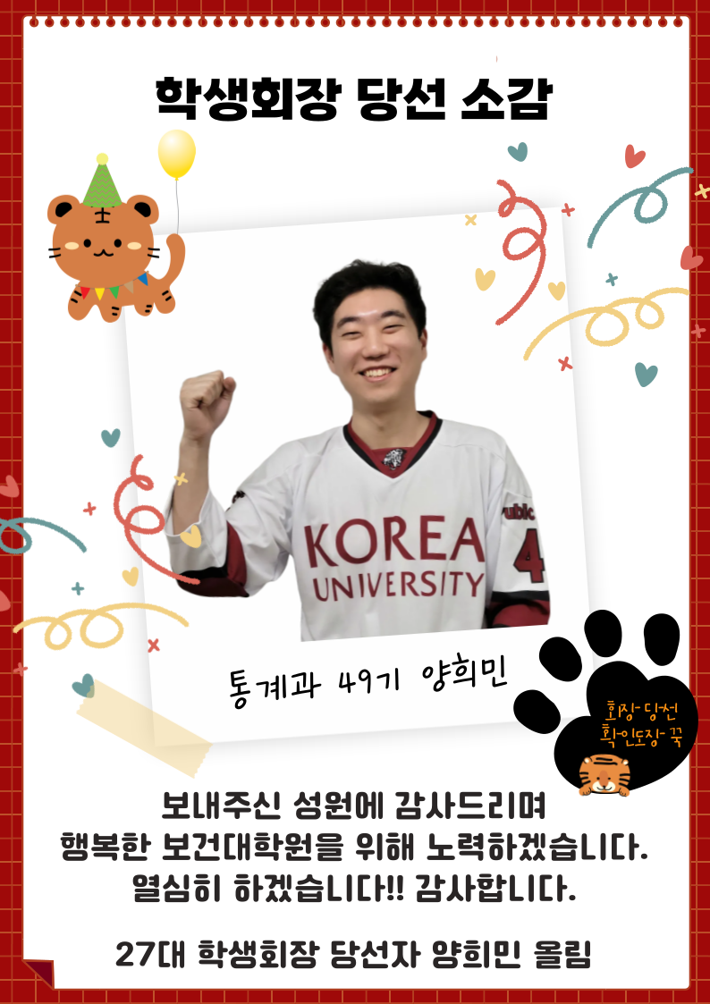 고려대학교 보건대학원 제 27대 총학생회장으로 당선된,
